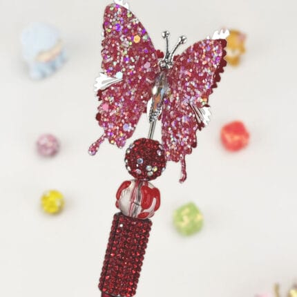 Butterfly Pink Half Beaded Pen Vintage