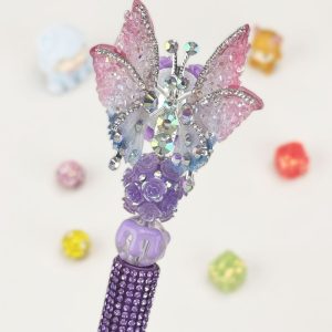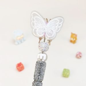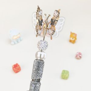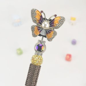 Butterfly With Pearl Gloden Half Rhinestone Pen Vintage