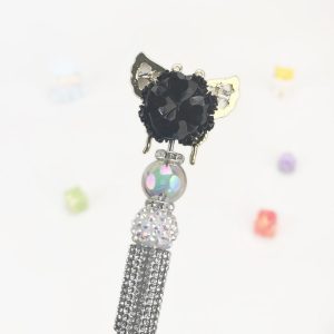 White Butterfly Sliver Half Rhinestone Pen Vintage